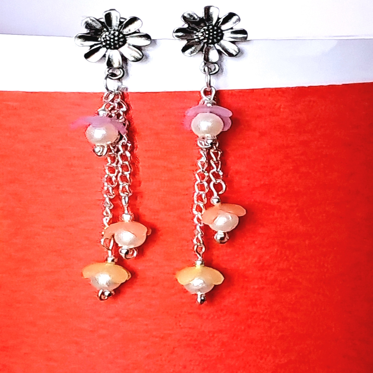 Exude timeless elegance with these stunning pearl drop earrings. Featuring a cascading design of lustrous white pearls connected with delicate golden links, these earrings bring sophistication to any look. The tiny pearl clusters at the bottom add a charming touch of grace.