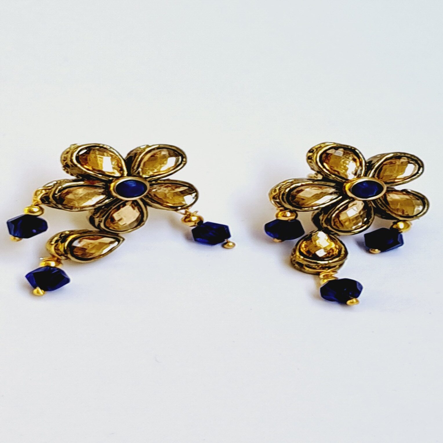 Elegant Gold-Toned Kundan Earrings with Teardrop Stones – Handmade Jewelry for Women – EAKU0003