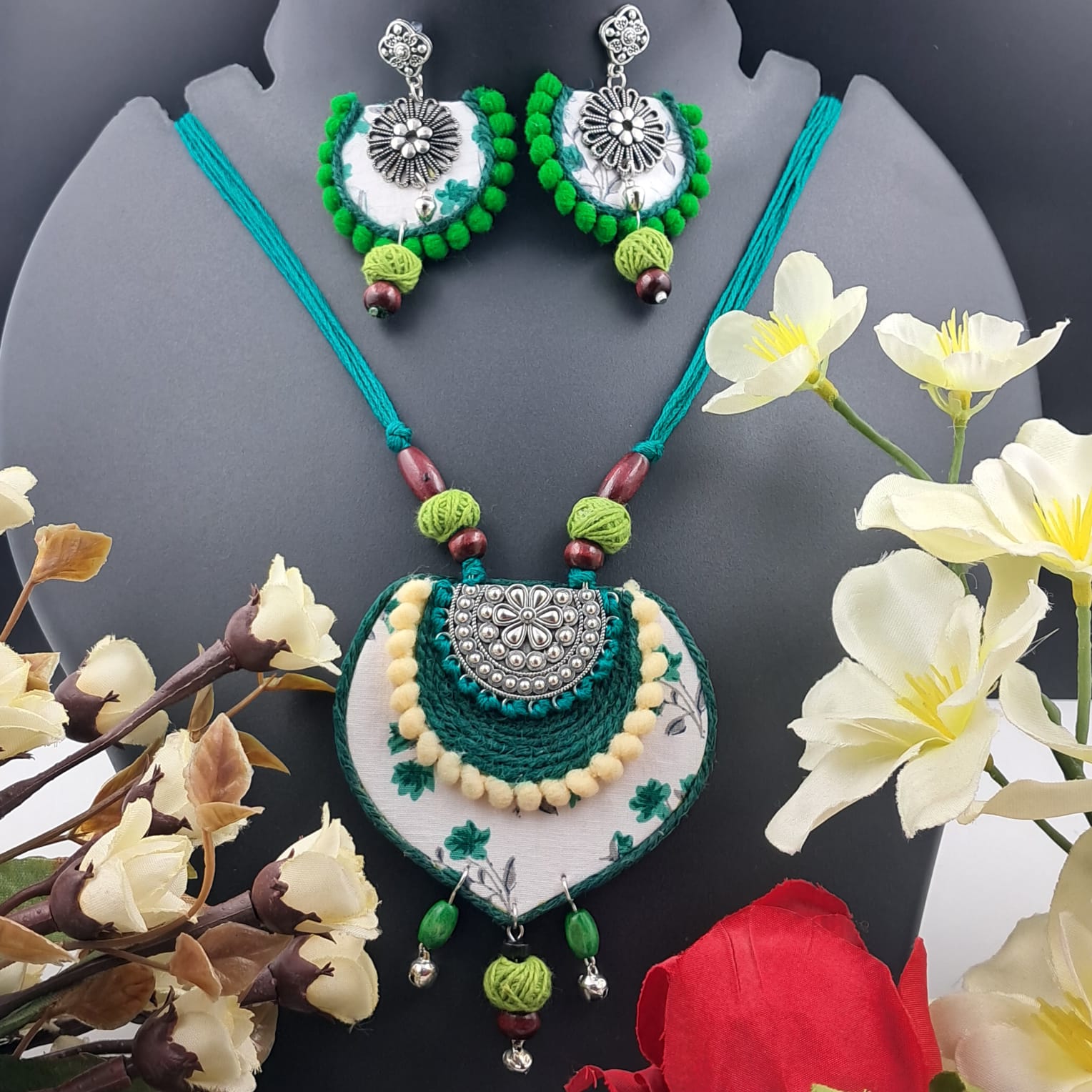 The necklace is paired with matching earrings that mirror the pendant’s charm, creating a cohesive and graceful look. Handmade with love by skilled artisans, this set celebrates the essence of Indian craftsmanship. Lightweight, comfortable, and adjustable — it’s perfect for festivals, casual gatherings, or cultural events.