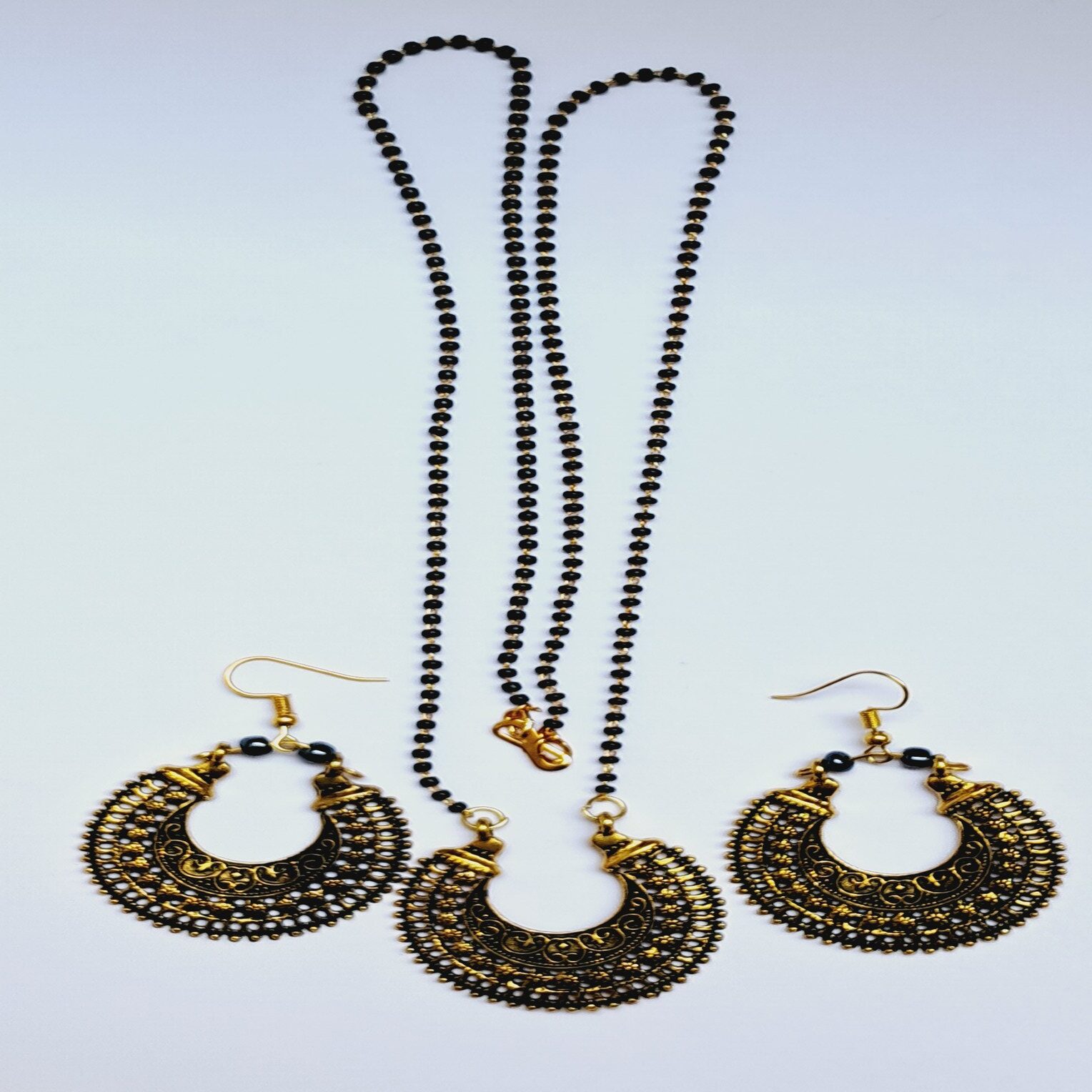 Elegant Black Bead Mangalsutra Set with Matching Earrings – MASE0001